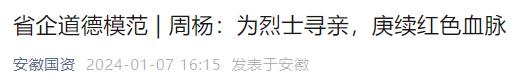 《安徽國資》:安徽省道德模范周楊——為烈士尋親,庚續紅色血脈