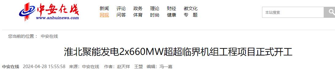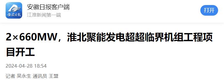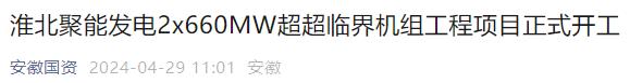 4月28日,安徽省“十四五”重要支撐性電源項目淮北聚能發電有限公司2×660兆瓦超超臨界機組工程項目在淮北市烈山區電廠現場舉行開工儀式。
