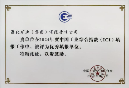 淮北礦業集團獲評“2024年度中國工業綜合指數(ICI)優秀填報單位”