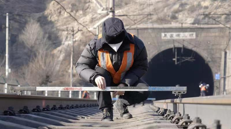 王家灣線路車間職工在進行線路維護。(中國鐵路太原局集團有限公司供圖)