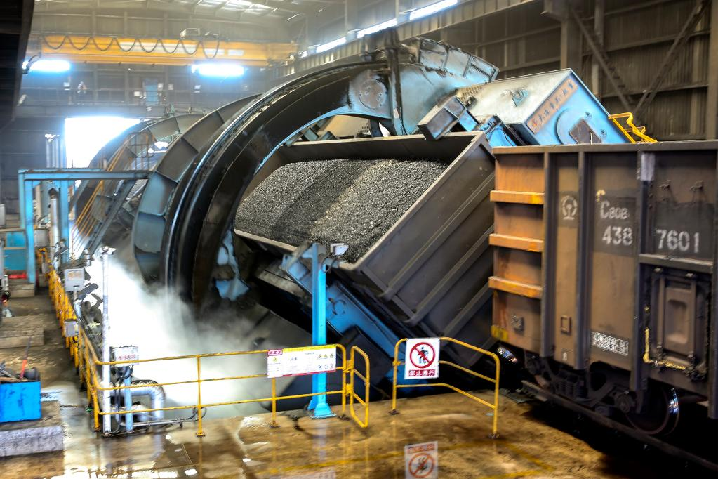 柳村南站翻車機房正在卸煤。(中國鐵路太原局集團有限公司供圖)