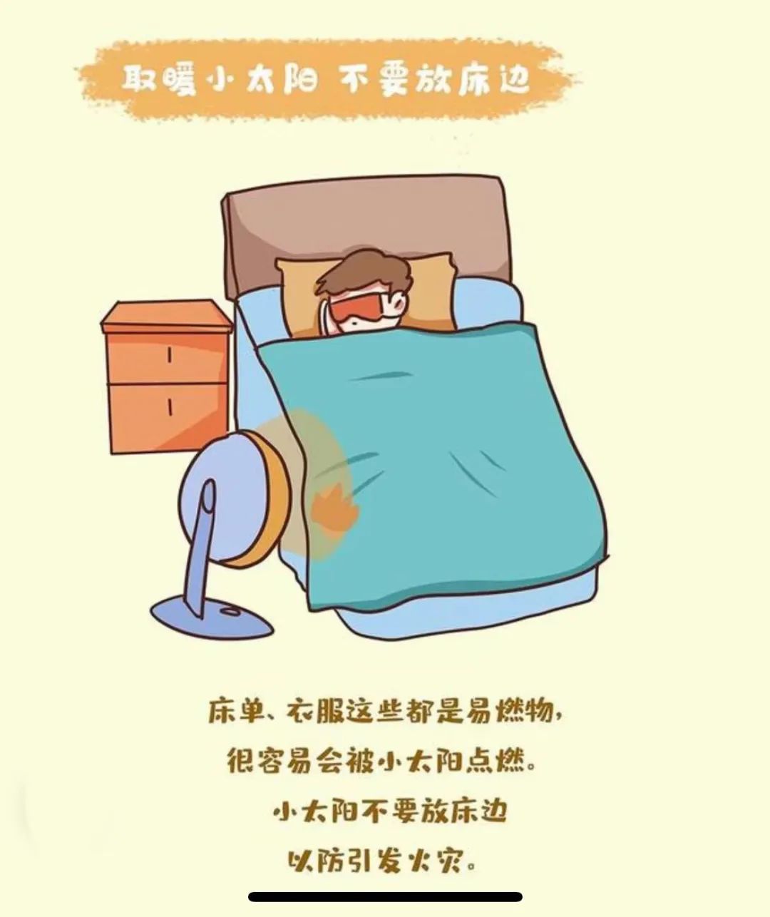 4.遠離臥室:煤爐、炭火等取暖設備不要直接放在臥室;應遠離易燃、易爆物品。